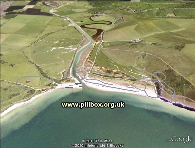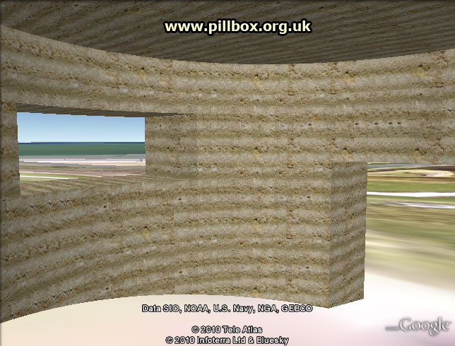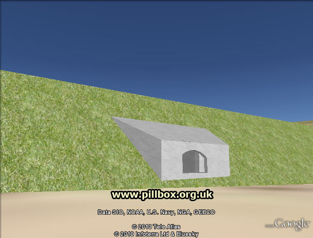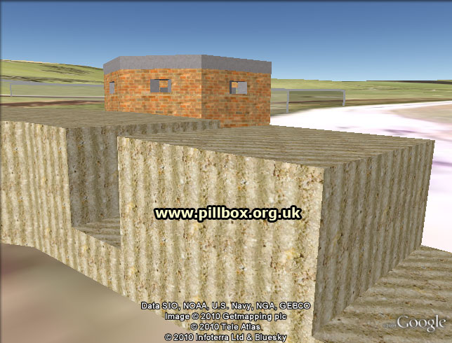 The video is a bit shaky, as there seems to be a problem with frame rate that causes the picture to jump on occasions and the Type 24 pillbox is canted to one side by Google Earth for some reason.